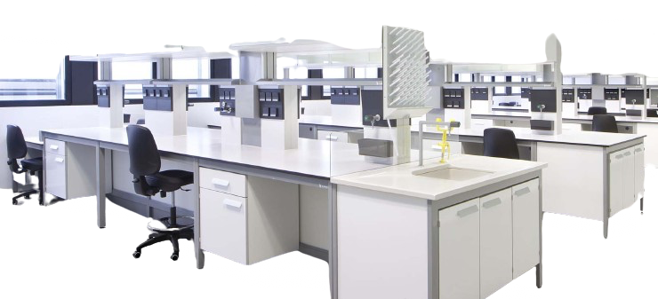 • Superficies de Trabajo Especializadas: Proporciona mesones y bancadas diseñados específicamente para soportar el trabajo científico. Estas superficies son resistentes a la corrosión, duraderas y fáciles de limpiar, siendo ideales para manipular productos químicos, realizar mediciones precisas o llevar a cabo experimentos y ensayos.